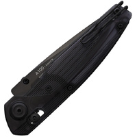 4.63" (11.76cm) closed. 3.63" (9.22cm) black DLC coated Elmax steel blade. Black Ultem handle. Thumb stud. Pocket clip. Boxed.