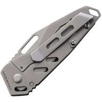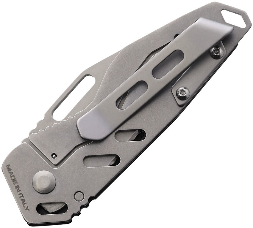 3" (7.62cm) closed. 2" (5.08cm) stonewash finish Bohler M390 stainless blade. Black aluminum handle with stainless back handle. Thumb pull. Lanyard hole. Pocket clip. Boxed.