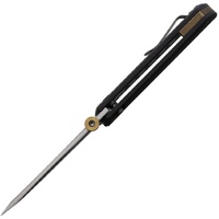 4.5" (11.43cm) closed. 3.5" (8.89cm) blade. Black G10 handle. Extended tang. Pocket clip. SLD-Magic SAN MAI tanto blade. Black molded plastic storage case. Boxed.
