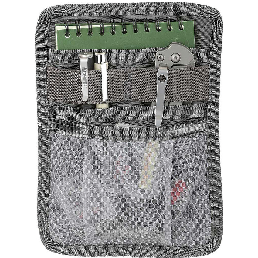 Entity Series. Dimensions: 5" x 7". Pack weight: 1.3oz. 500D Hex Ripstop nylon fabric construction. Assorted pockets and elastic bands. Gossamer mesh sleeve. Reinforced with double stitching throughout. Hook backing for secure attachment to a loop surface. Color: gray. Bulk packed.