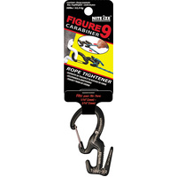 Rope Tightener. Contains one unit. Clip to fixed points for easy connection and eliminate the hassle of knots. Fits 1/16"-3/16" rope. 50 lb. load limit. Black finish stainless construction. Hang packaged.