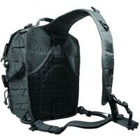 Black. Approximately 660 cu. in. total capacity. Main compartment: 13" x 9 1/2" x 4". Front upper pocket: 9" x 4" x 1". Front lower pocket: 9" x 9" x 1". Front slip pocket: 8" x 8". Rear pocket: 11" x 9". Single shoulder sling pack. PALS modular attachment points, and a hydration reservoir loop. lon thread (stronger than ordinary industry standard nylon thread). #AS-100 high grade closed-cell foam padding material for superior shock protection. High tensile strength nylon webbing. #10 high strength zippers and zipper tracks. UTX-Duraflex nylon buckles for low sound closures.
