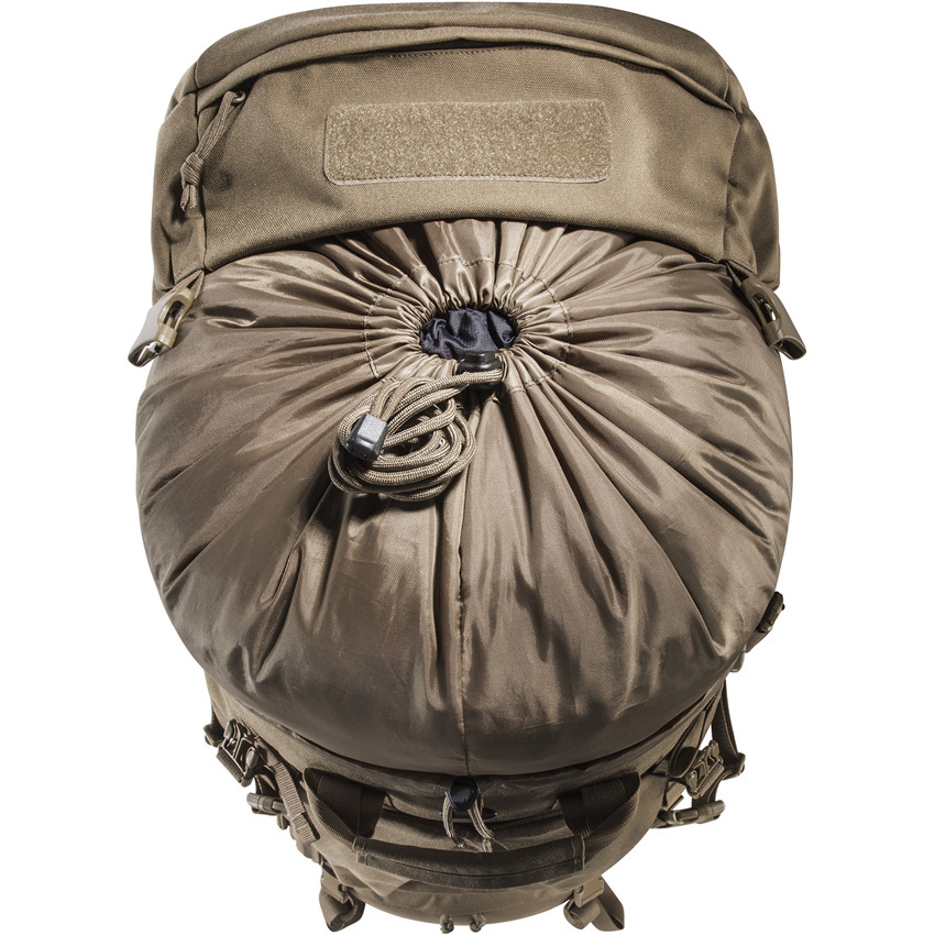 Dimensions: 32" x 13" x 8". V2 Plus Carry system. Suitable for transporting heavy loads. Removable section between main and bottom compartment. Snow skirt with drawstring and zipper. Load control straps. Special construction that allows single hand adjustment of hip belt. Compression around perimeter of base. Height adjustable lid with zippered front compartment. Hydration system compatible. Large zippered front opening into the main compartment. Front lacing system. Removable side pouches with zipper (each 12 liter volume). Insert pockets on both sides. Two loops for equipment. Helmet holder attachment. YKK zippers. 700D Cordura construction. Color: Coyote Brown. Bulk packed.