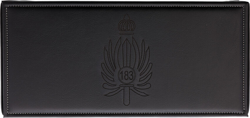 10.38" (26.37cm) overall. 5.5" (13.97cm) satin finish Bohler N690 stainless blade. Brown wood handle. Stainless guard. Comes with leather presentation case. Brown leather belt sheath. Boxed.