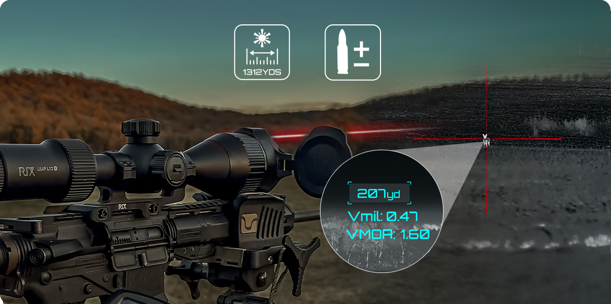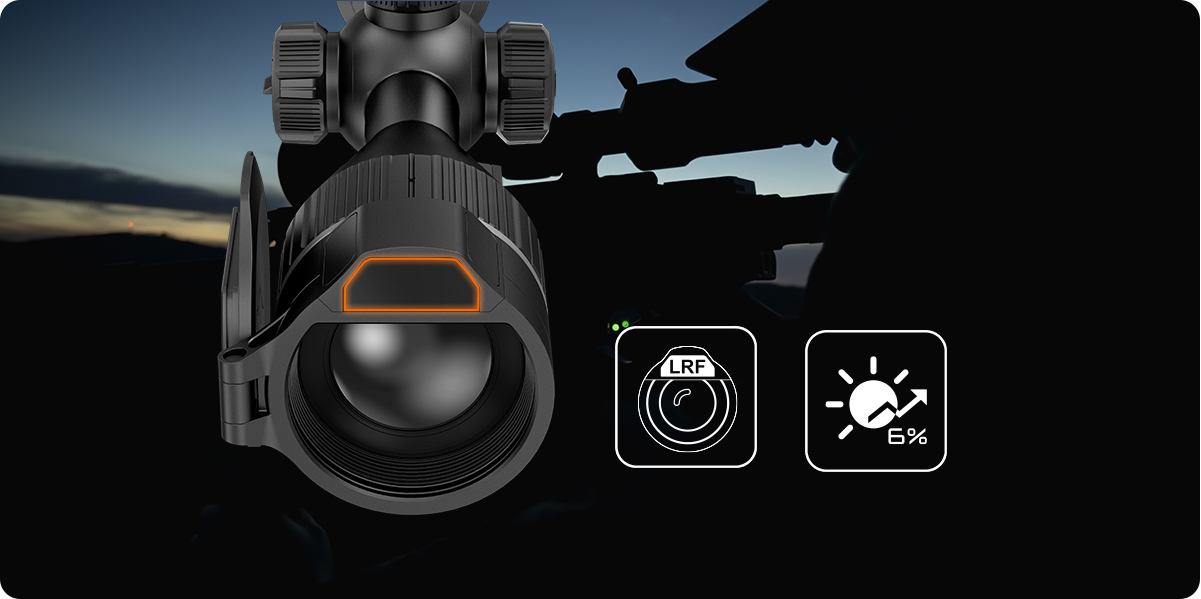 Since long-range shots demand precise aiming adjustments, the built-in laser rangefinder measures up to 1,312 yards and integrates with ballistic calculations to provide accurate holdover solutions. PIP mode further displays corrected aiming points for faster target acquisition. The rangefinder box can be moved closer to the target for less eye movement and a clearer view.