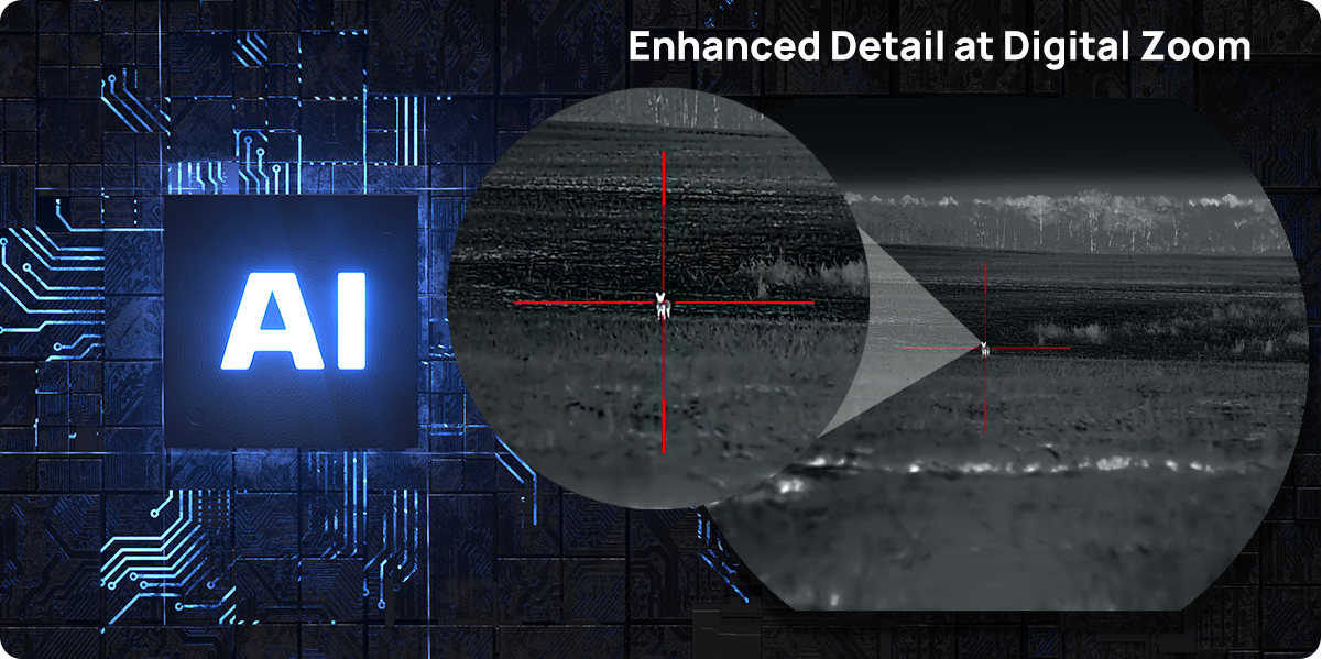Unlike rectangular screens, the circular 1.03” 2560×2560 AMOLED display offers a familiar eyepiece view for traditional riflescope users. Paired with continuous optical zoom, it preserves image detail, delivering a precise and comfortable shooting experience.
