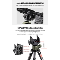 ✪ Base of the saddle is Arca standard QR plate to be mounted on Arca standard ballhead directly; Safety stop screws avoid dropping from the ballhead by powerful shock. 1/4" and 3/8" mounting holes work with tripods without Arca dovetail structure.